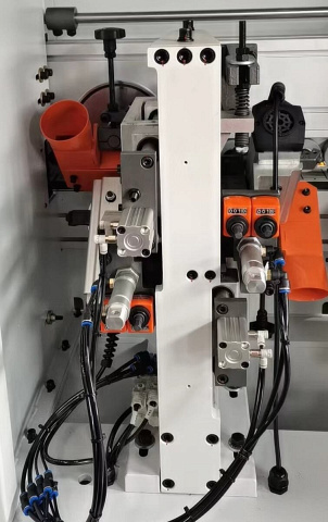 ![]() | Пресс группа со скребками Состоит из одного подающего ролика большого диаметра Ø 100 мм и трех до прессовочных Ø 65 мм роликов обеспечивая надежную фиксацию кромочного материала на торец заготовки.Регулировка площадки прижимной группы на толщину кромочного материала осуществляется с помощью цифрового счетчика.Каждый ролик оснащен индивидуальным пневмоцилиндром.Прижимные ролики подходят для прижатия кромочного материала различной толщины на торец заготовки для минимизации клеевого шва. |