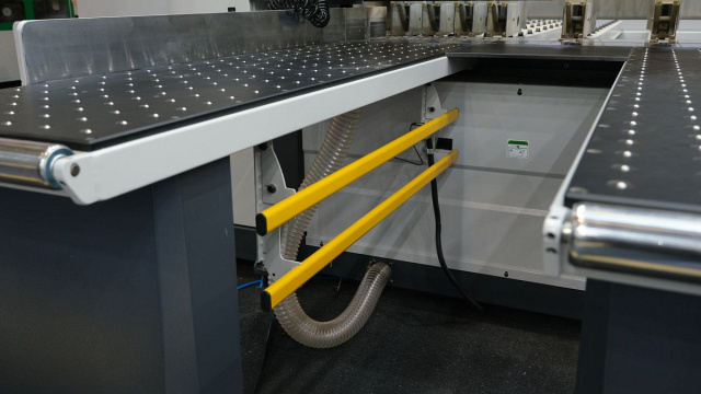 ![]() | Загрузочные столы Приемные-подающие столы с воздушной подушкой предотвращают появление царапин при перемещении заготовок, облегчают перемещение пачки плит. Дополнительно для удобства базирования листов на столах предусмотрены закатные ролики. |