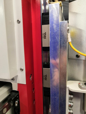 ![]() | Система картриджной смазки направляющих «THK-LACS» (Япония) Позволяет обеспечить необходимую смазку направляющих по осям перемещения X, Y, Z, при этом количество смазочного материала четко дозировано и расходуется в минимальном количестве. Данная картриджная система позволяет значительно снизить время на обслуживание станка и риск повреждения направляющих за счет недостаточного или избыточного количества смазочного материала. Самосмазывающиеся подшипники THK способны работать до 5000 км без обслуживания. Превосходная защита от пыли, особенно в производстве мебели и деревообработке. |