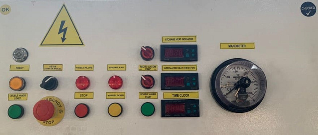 ![]() | Пульт управления Управление всеми функциями пресса происходит с главной панели. Автоматическая система восстановления давления позволяет удерживать его в заданном оператором диапазоне. Электрический клапан, управляющий автоматическим открытием по сигналу таймера. |